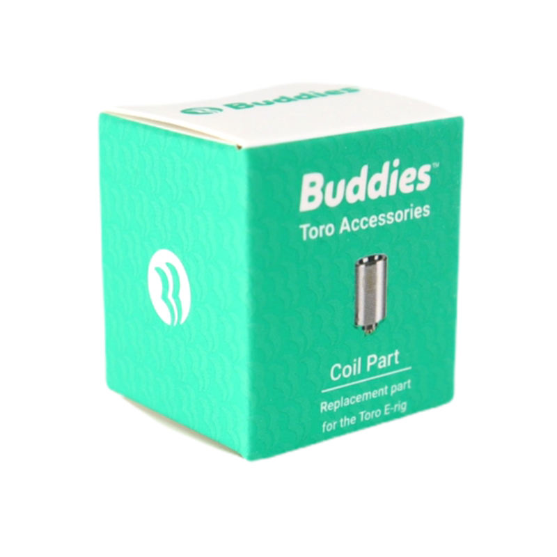 The heating coil has a ceramic housing and a coil that enables even heating and quicker cooldown times. To replace a burnt-out coil, wait until the old one is cooled down, unscrew it from the Toro E-rig base, and screw in the replacement heating coil. It is recommended to wipe down the whole device after every use with an alcohol wipe to keep the parts working properly.
