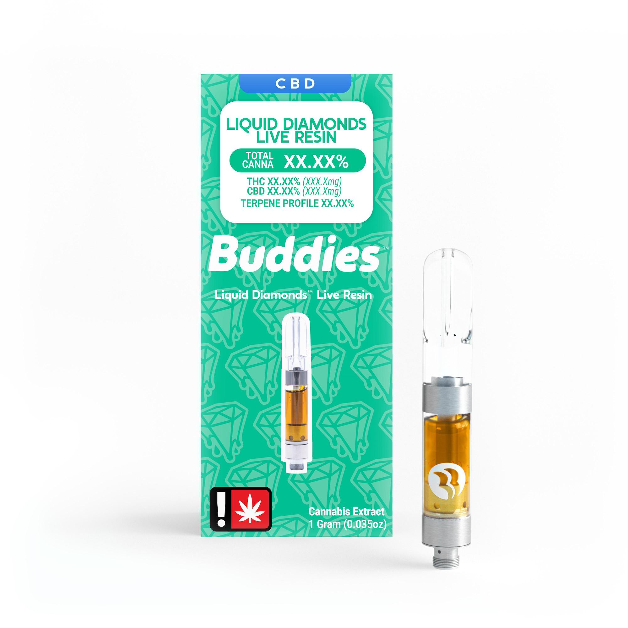 Liquid Diamonds™ live resin begins with fresh frozen, whole-plant inputs. Uncut live resin with no distillate or cutting agents. The same full spectrum experience of live resin dabs with the convenience of a delivery device in your pocket! Buddies has developed a proprietary Liquid Diamonds process that brings you uncut live resin, with no additives, distillate, or non-cannabis adulterants. Always fresh frozen flower, sourced from Buddies farms or partner farms. That's the Buddies Brand™ Soil to Oil ethic.
