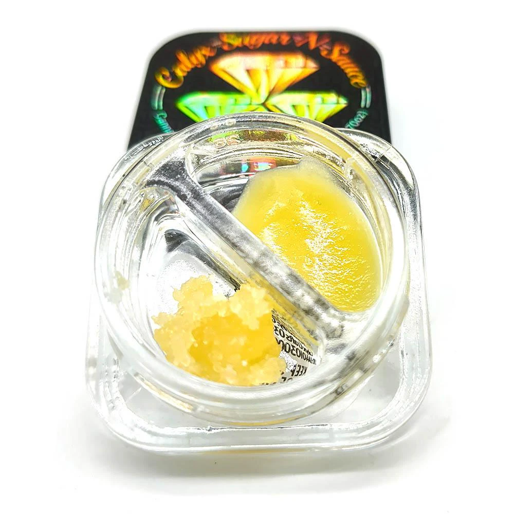 Packaged in Calyx Crafts new Yin/Yang jars. One side is diamonds and one side is sauce, allowing consumers to mix their own ratio.