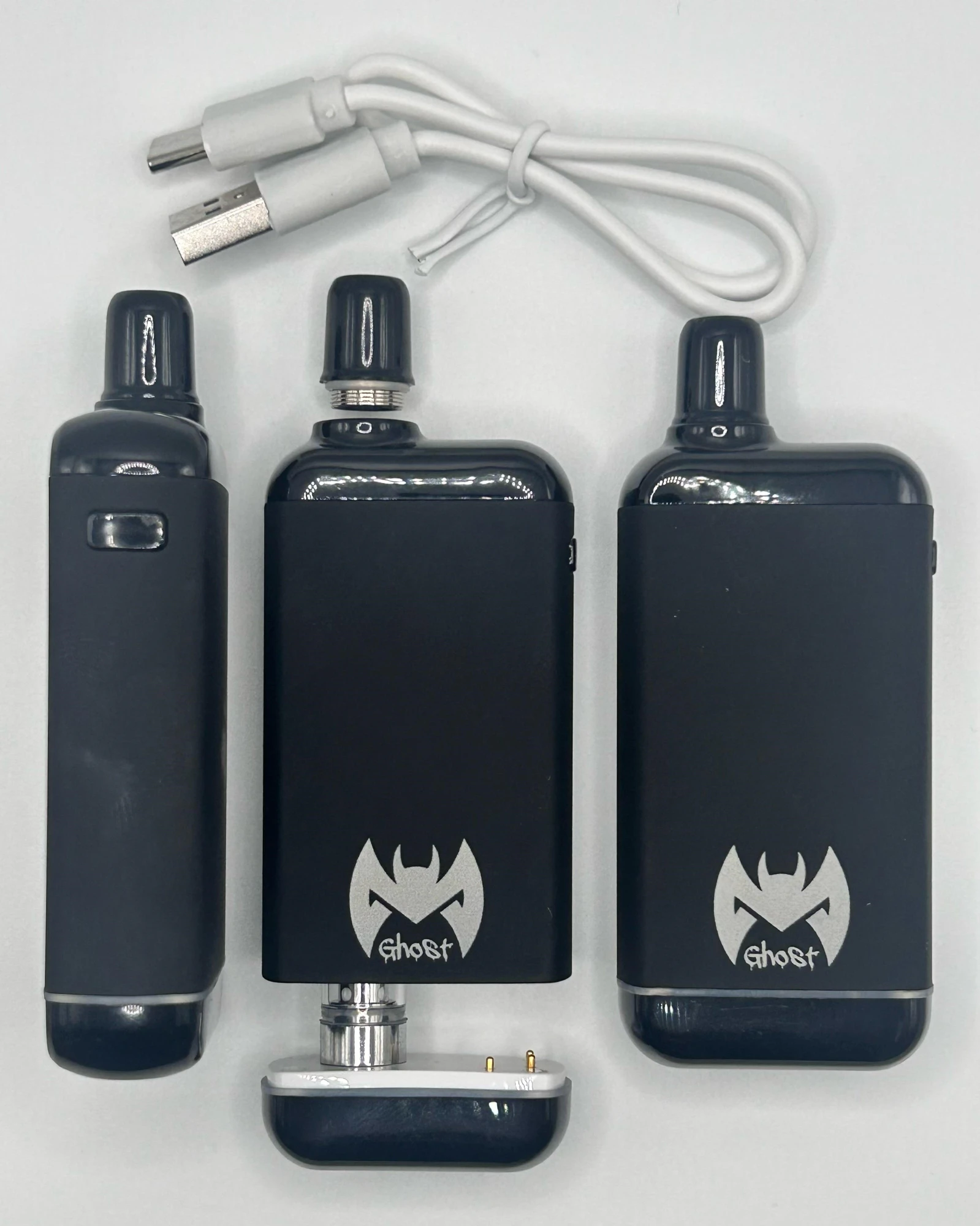 Breeze through 3 voltage settings 2.8v, 3.4v and 3.8v with just three clicks of a button, Pre-Heat 1.85v with just two clicks. Activated by BOTH direct draw and side button! With a removeable mouthpiece for easy cleaning! The Dab Bat ghost is a must have for those who seek discretion, style, and performance!