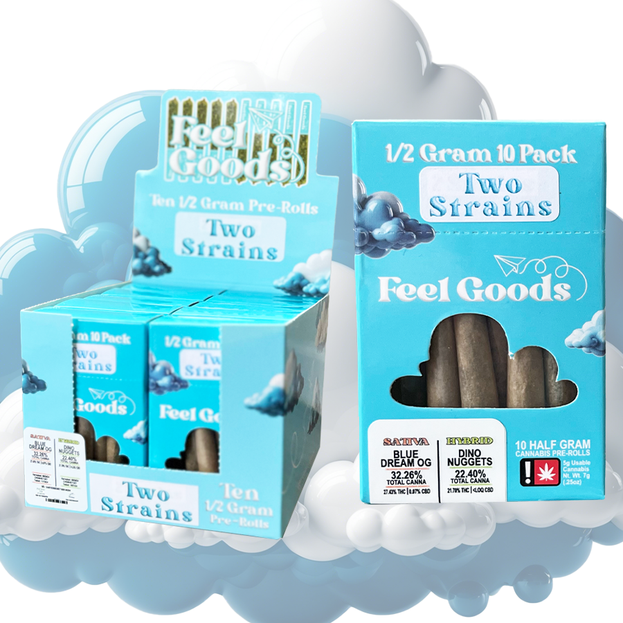 2 Strain Variety 10 Packs! 10x half gram prerolls split between two different strains!