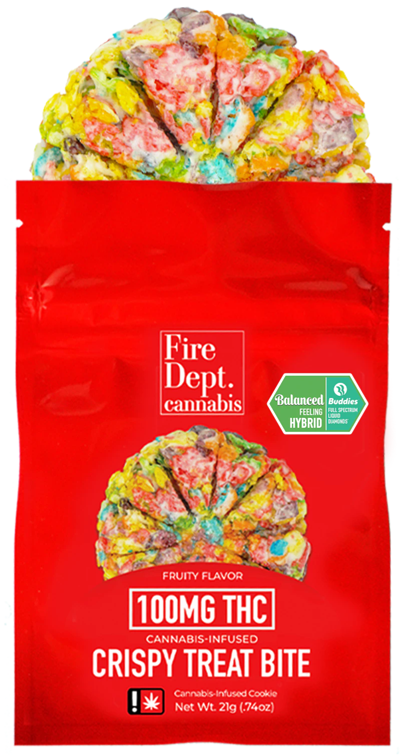 Fresh and packed with flavor, Fire Dept's full spectrum Crispy Treat Bites are a must have! A signature blend of crisp textures and marshmallow goodness, these sweet and potent edibles are perfect for every occasion. These handcrafted edibles are powered by Buddies live resin, to meet everyone's preferences, and kept frozen until distribution for the freshest taste and highest quality.