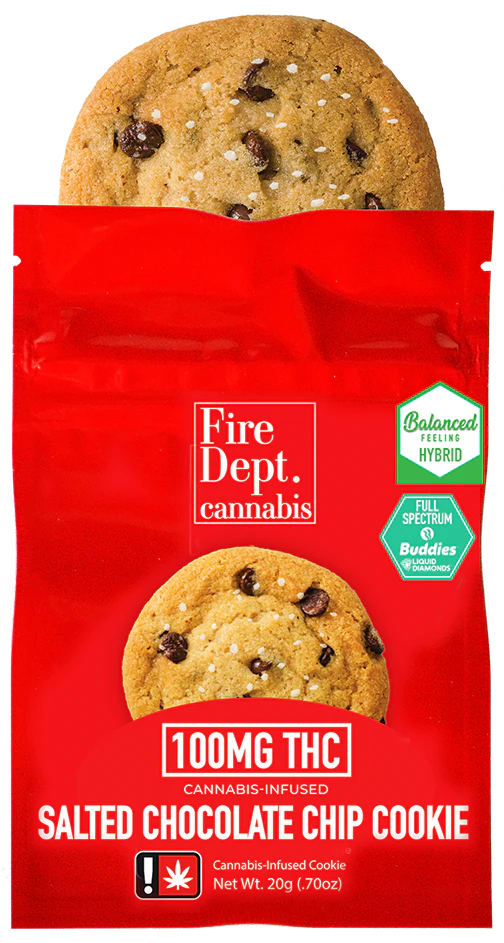 Fire Dept. chocolate chip cookies delicious moist morsels, which are infused with live resin from Buddies that is effect specific. These hybrid cookies have an intense effect on the body while pleasantly slowing your train of thought.
