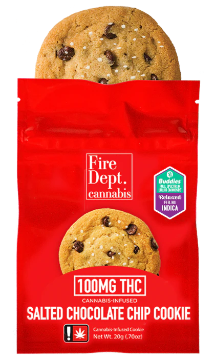 Fire Dept. chocolate chip cookies delicious moist morsels, which are infused with live resin from Buddies that is effect specific. These indica cookies have an intense effect on the body while pleasantly slowing your train of thought.