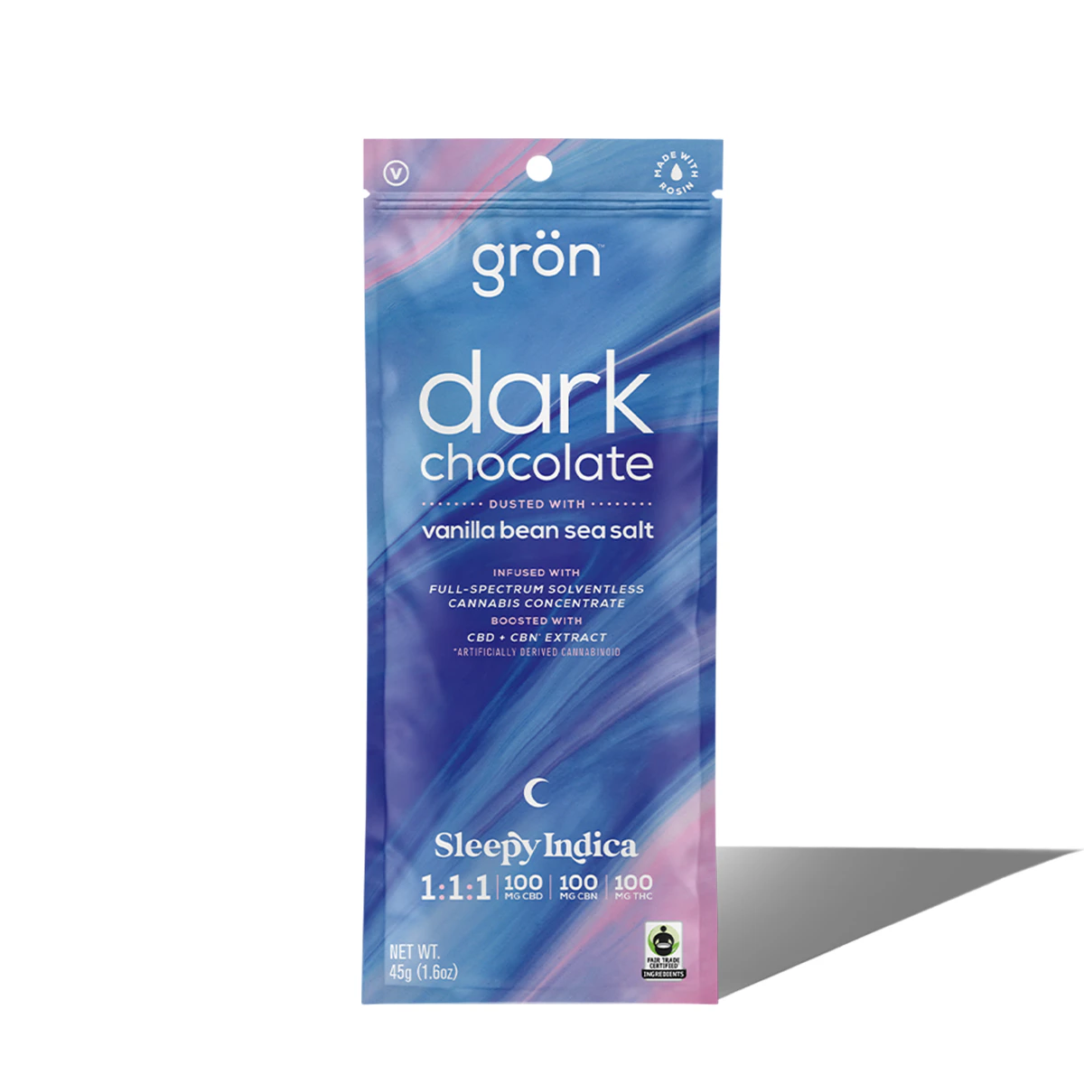 Wind down and snuggle up with a bite of Fair Trade dark chocolate dusted with Jacobsen vanilla bean sea salt. Infused with CBD, CBN and THC in a 1:1:1 ratio, the sleepy indica effects will keep you dreaming all night long.
