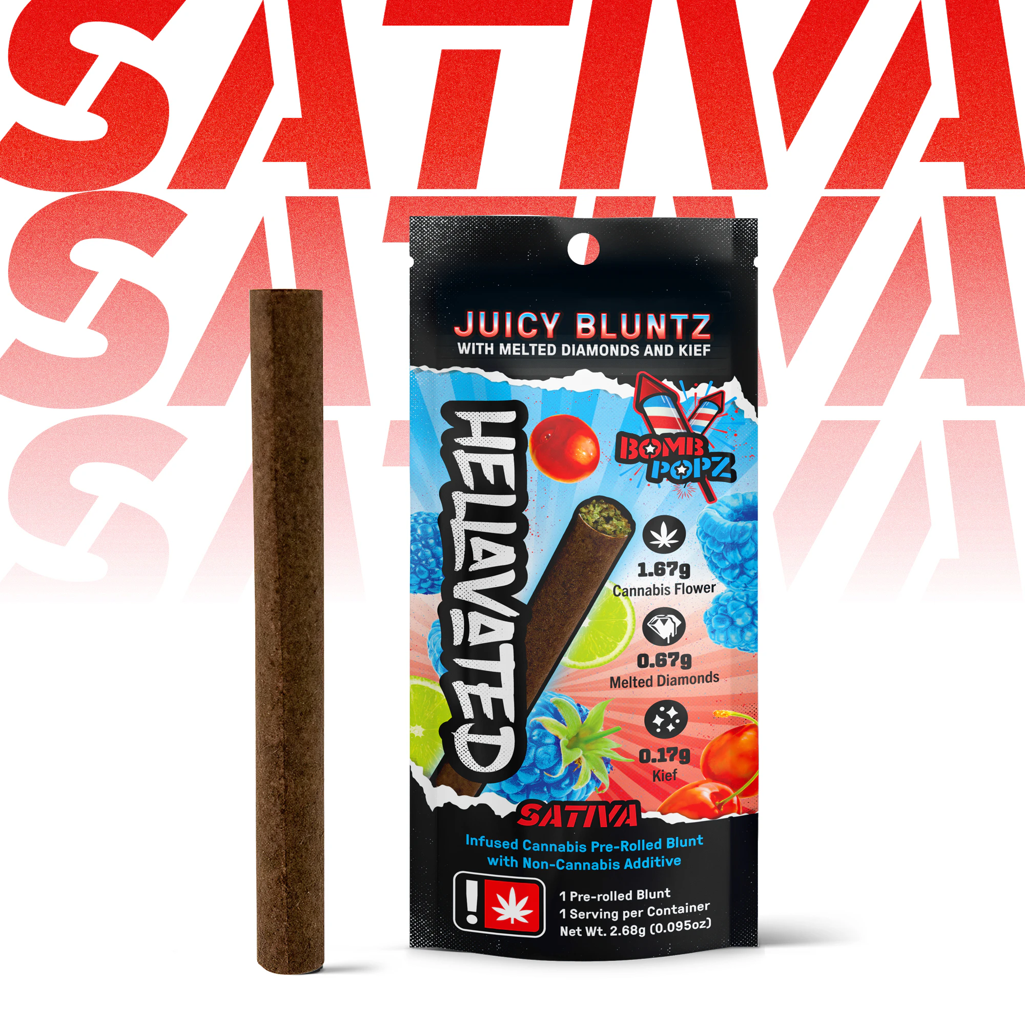 Kick it into HIGH gear. Juicy Bluntz combine whole bud flower with our proprietary infusion of melted diamonds, botanical terpenes, and kief to create a potent flavor explosion, packaged expertly in a 2.5g blunt. You can expect a smooth, tasty burn all the way to the end that delivers on potency and is packed with flavor!