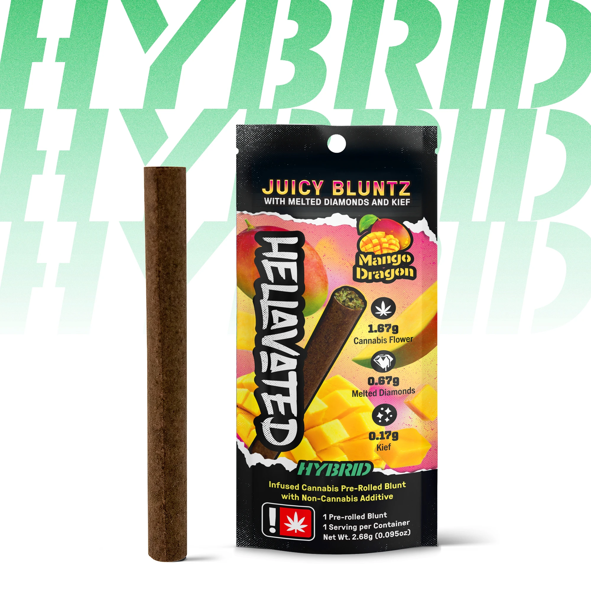 Kick it into HIGH gear. Juicy Bluntz combine whole bud flower with our proprietary infusion of melted diamonds, botanical terpenes, and kief to create a potent flavor explosion, packaged expertly in a 2.5g blunt. You can expect a smooth, tasty burn all the way to the end that delivers on potency and is packed with flavor!