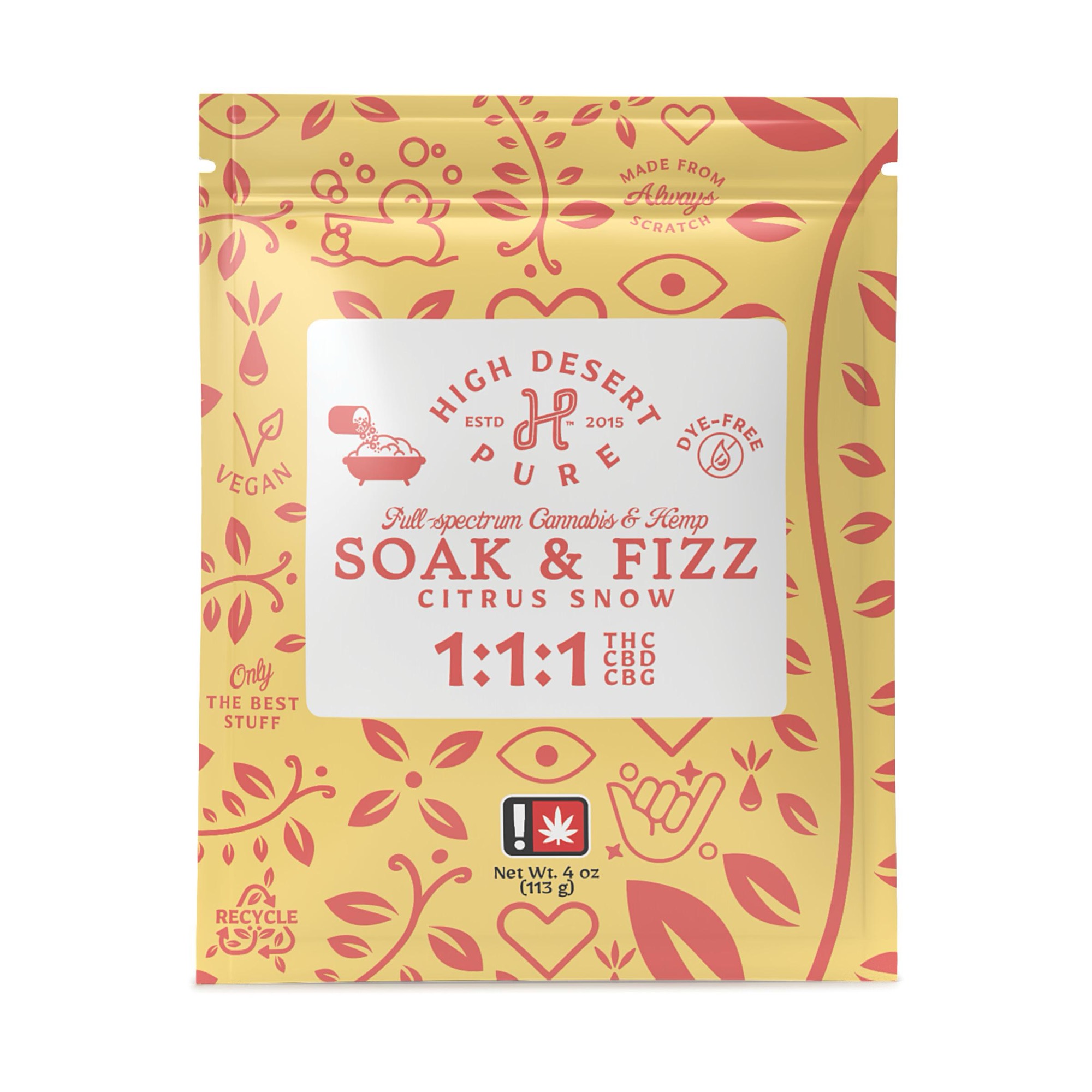 Our fizzy bath powder is made from scratch with all-natural, skin-friendly ingredients. Each container holds 600 mg of cannabinoids in a soothing and fizzy 1:1:1 CBD/THC/CBG blend. If you split that up into four baths, you’ll have roughly 100 mg in each bath. Be prepared to feel noodly—before long, you’ll be ready to pour yourself into bed.