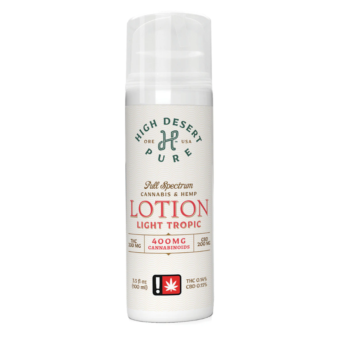 This rich, hydrating lotion feels smooth to the touch and never leaves an oily residue behind. Loaded with 300mg of cannabinoids, this lotion combines the power of full-spectrum extract with silky hydration alongside a tropical fruit and coconut scent. This product is similar to their clinical strength lotions, but to a lesser degree of potency. High Desert Pure includes mango butter, shea butter, safflower oil, and a few other goodies to moisturize skin and fight free radicals without clogging pores. Let there be Light Tropic!