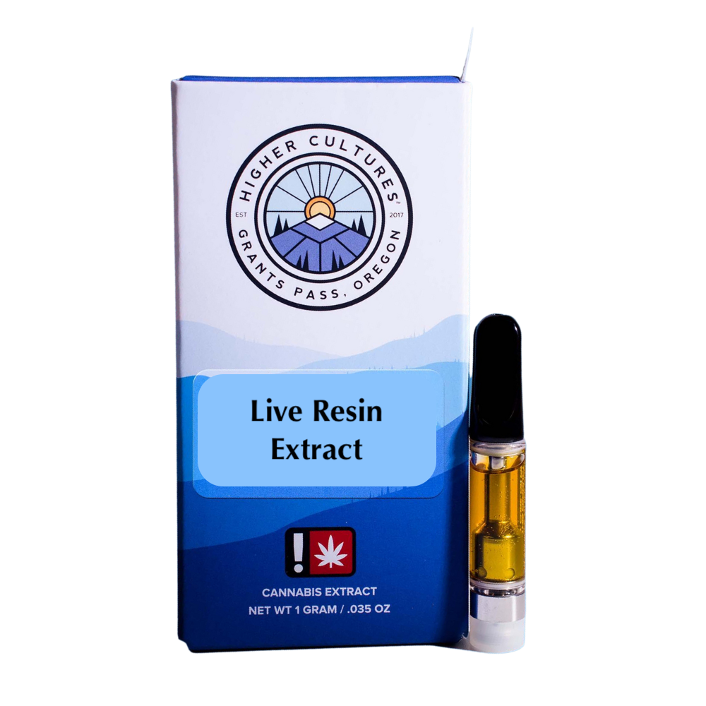 Higher Culture Live Resin Extract (LRE) formulation was developed to allow users to enjoy the flavor and substance of a fresh frozen extraction with the added benefit of affordability. LRE Carts offer consumers the essence of a strain captured during a fresh frozen extraction (i.e. High Terpene Extract) with augmented potency by infusing strain specific THC distillate created in-house in their state-of-the-art Grants Pass facility. This combination provides a well-rounded, single strain, full spectrum experience at a competitive price point.
