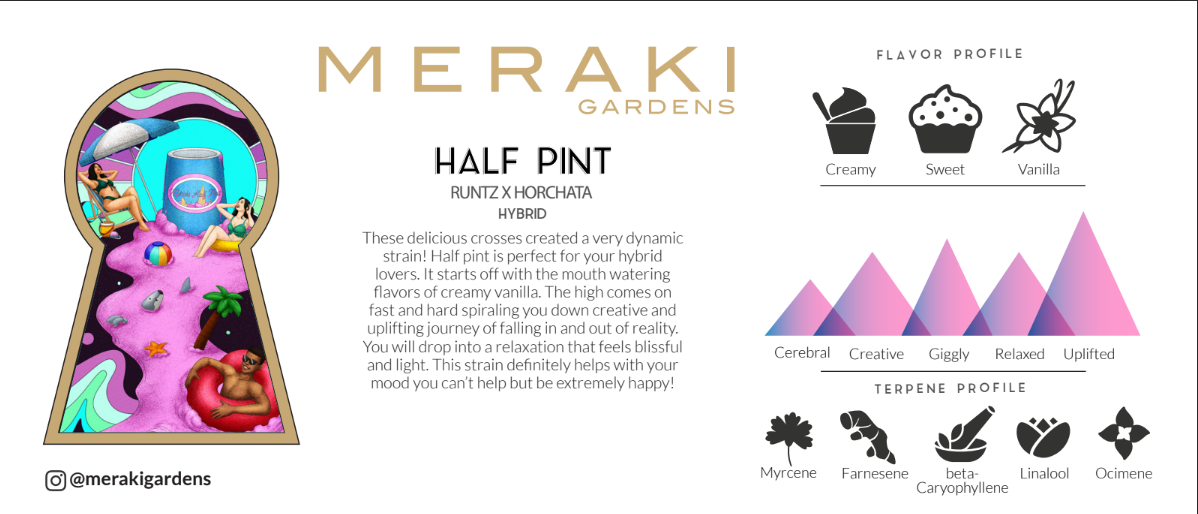 Meraki is Female owned and Family operated indoor garden. We have a passion for organic cultivation and we are proud to be clean green certified and Kosher certified. Being mindful of the environment and our impact that it has on the Earth is a part of our everyday practice. We focus on sustainable growing practices and finding ways to lower our carbon footprint. Ensuring that you feel good about consuming Meraki Flower. We cater to each and every plant giving it the same amount of love and attention, leaving you high with good vibrations and an experience you won't forget.